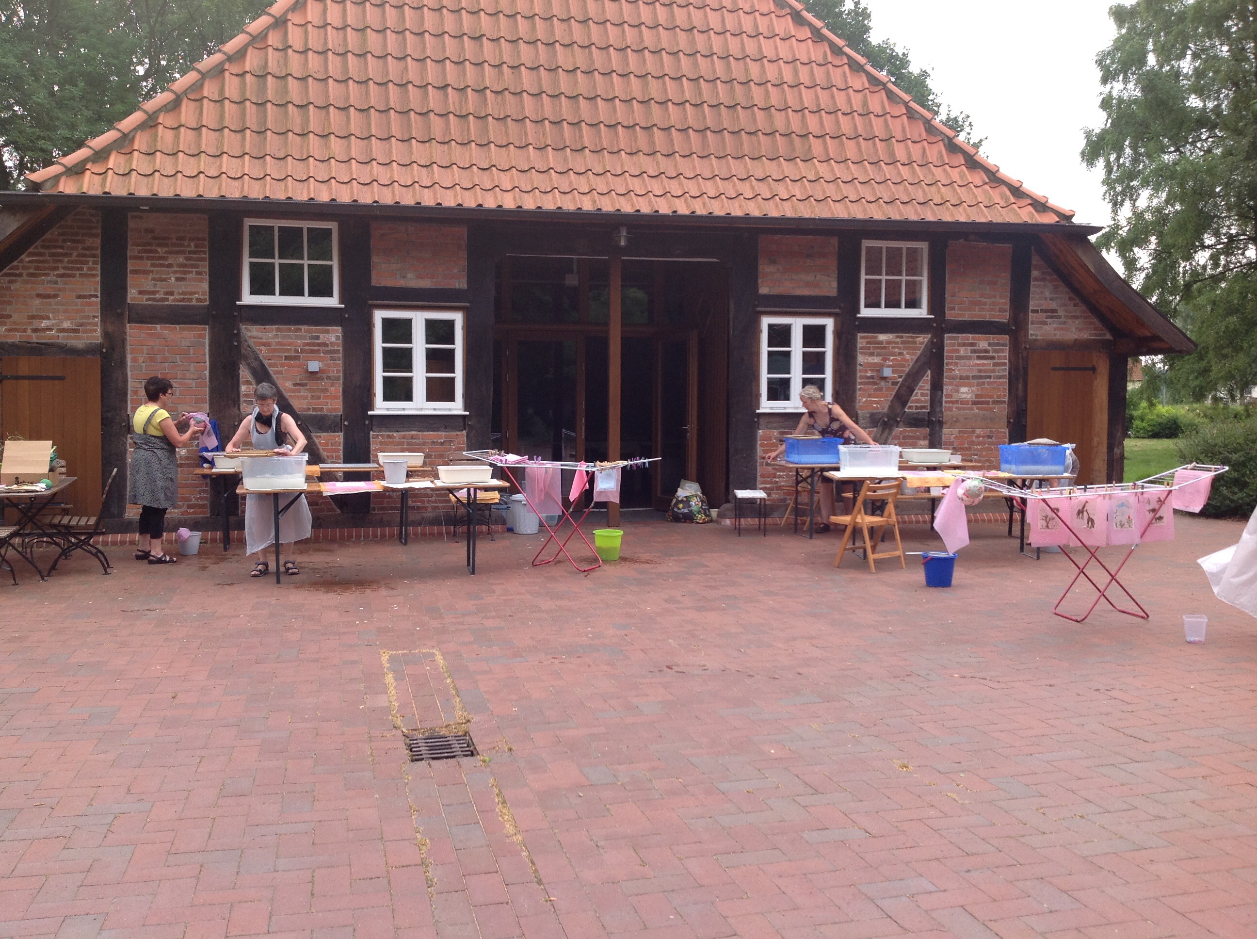 Heute ging mein dreitägiger Kurs „Papier in Form“ zu Ende , der zum 4. Mal auf dem historischen Gelände der Freudenburg in Bassum im Rahmen der Sommerakademie statt fand. Es war wieder eine sehr schöne Zeit mit netten und kreativen Kursteilnehmerinnen und echtem Sommerwetter. Gearbeitet wurde zwei- und dreidimensional mit handgeschöpftem Papier, bzw. Papierpulpe.