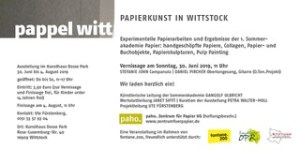 Gezeigt werden experimentelle Papierarbeiten verschiedener KünstlerInnen sowie Ergebnisse der 1. Sommerakademie Papier im Kunsthaus Dosse Park. Veranstalter ist das paho. zentrum für Papier. http://www.zentrumfuerpapier.de